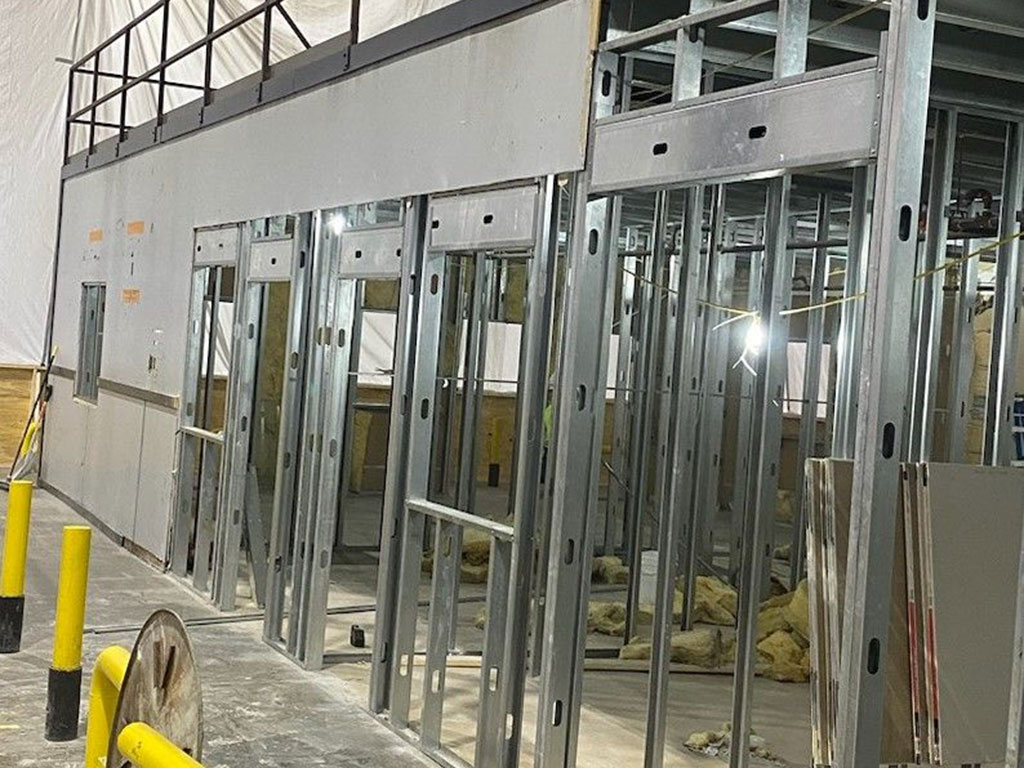 Project Managers Mathew Ham and Brian Maldonado supervised the team through the scope of work at the Midway, Tennessee location. The goal of this project was to create offices and restrooms inside the existing warehouse space.