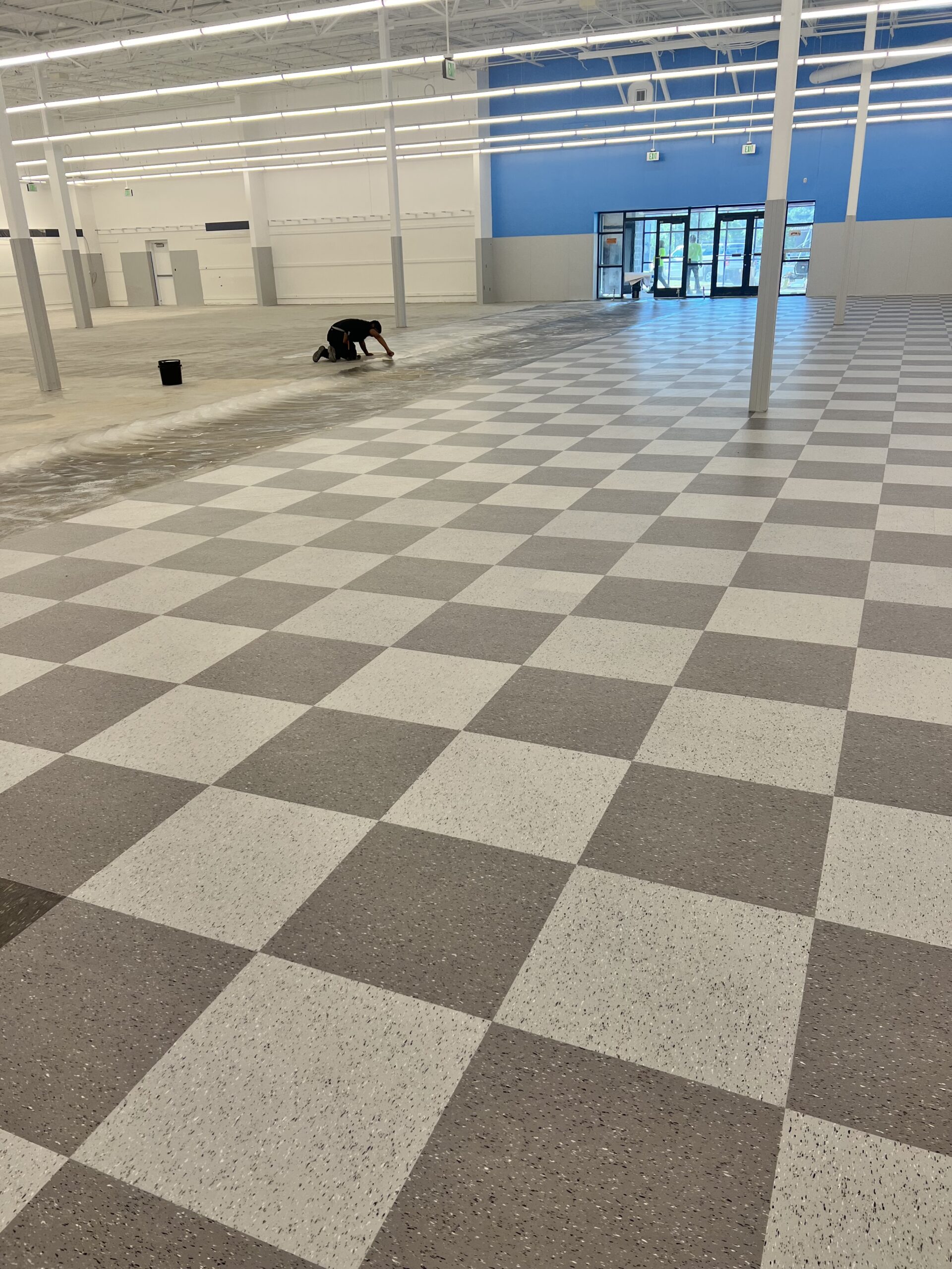 - Installed products: Concrete sealing, LVT, VCT, Base, Ceramic tile