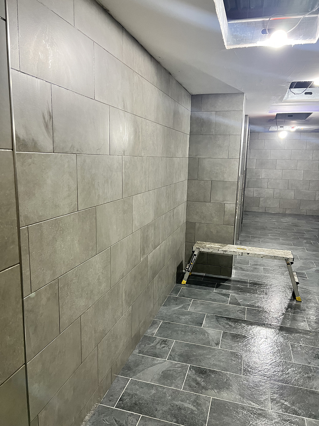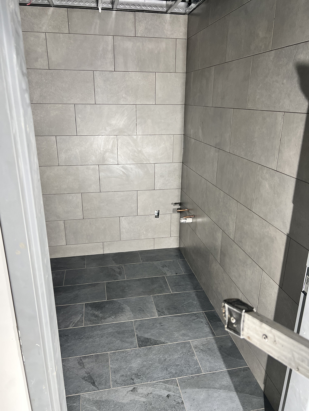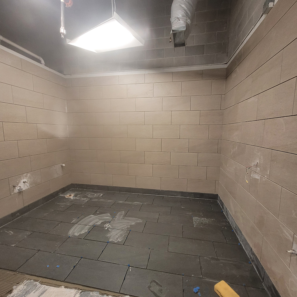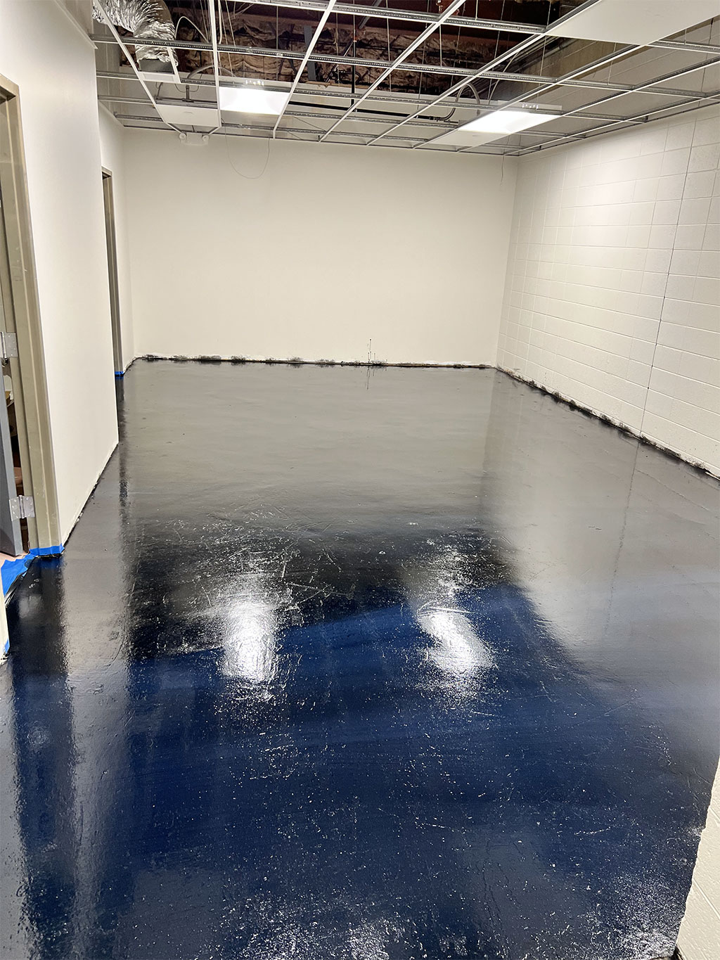 - Installed product: Ceramic Tile, Sealed Concrete, LVT, Black Beauty, Base; Wall Bumpers