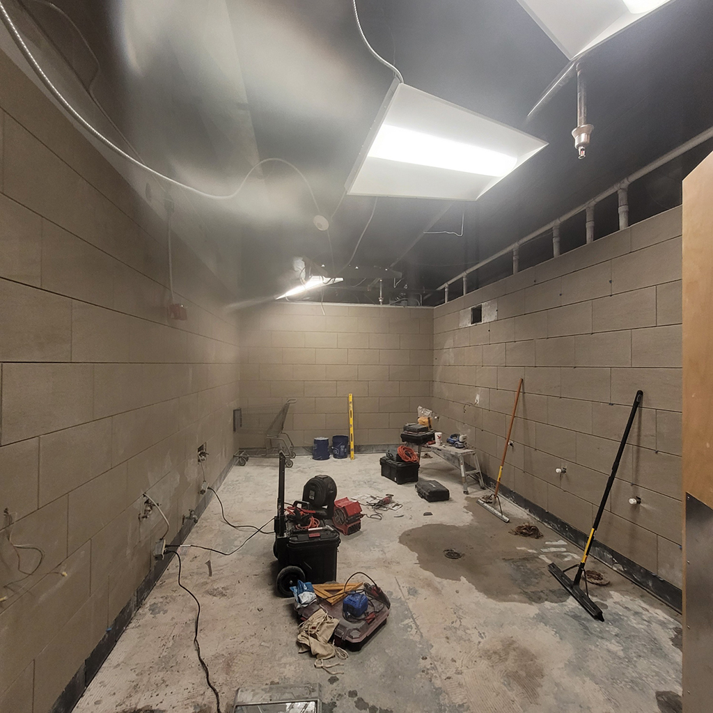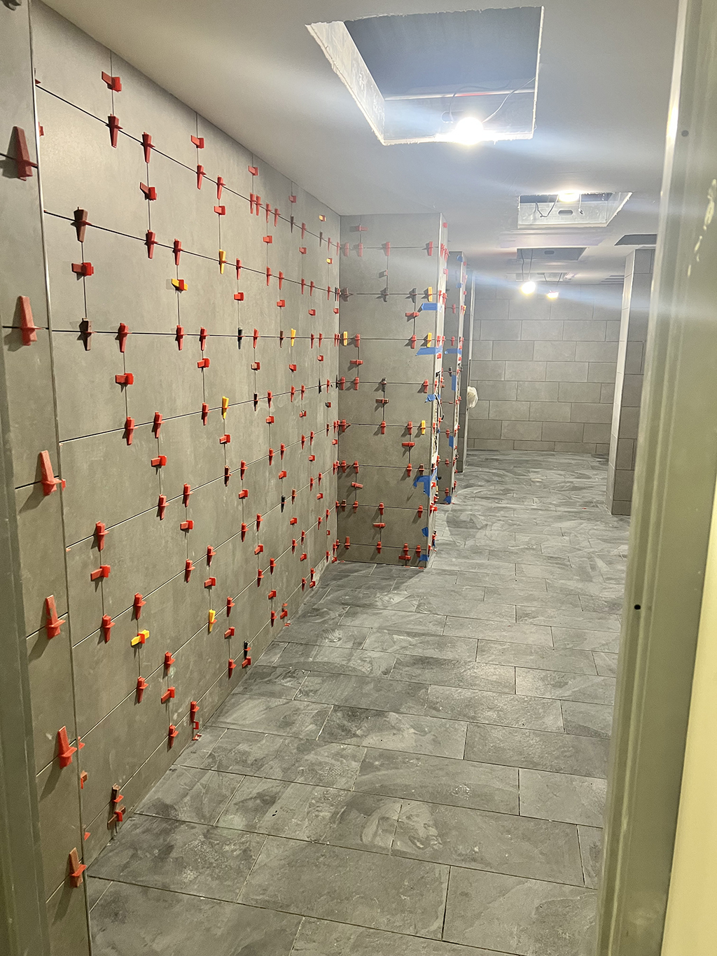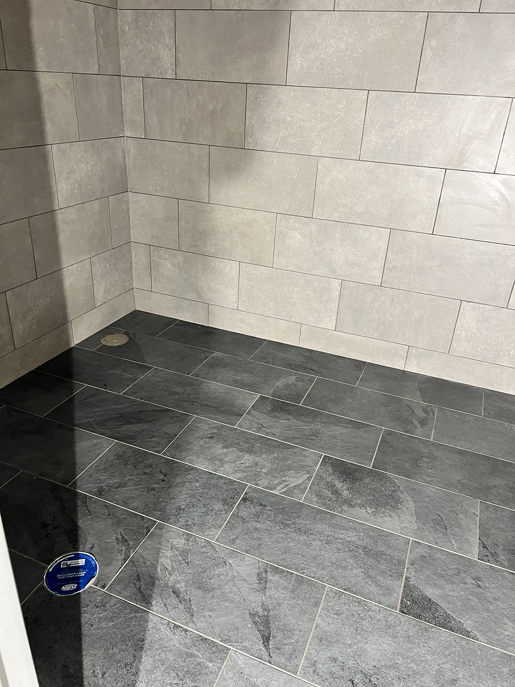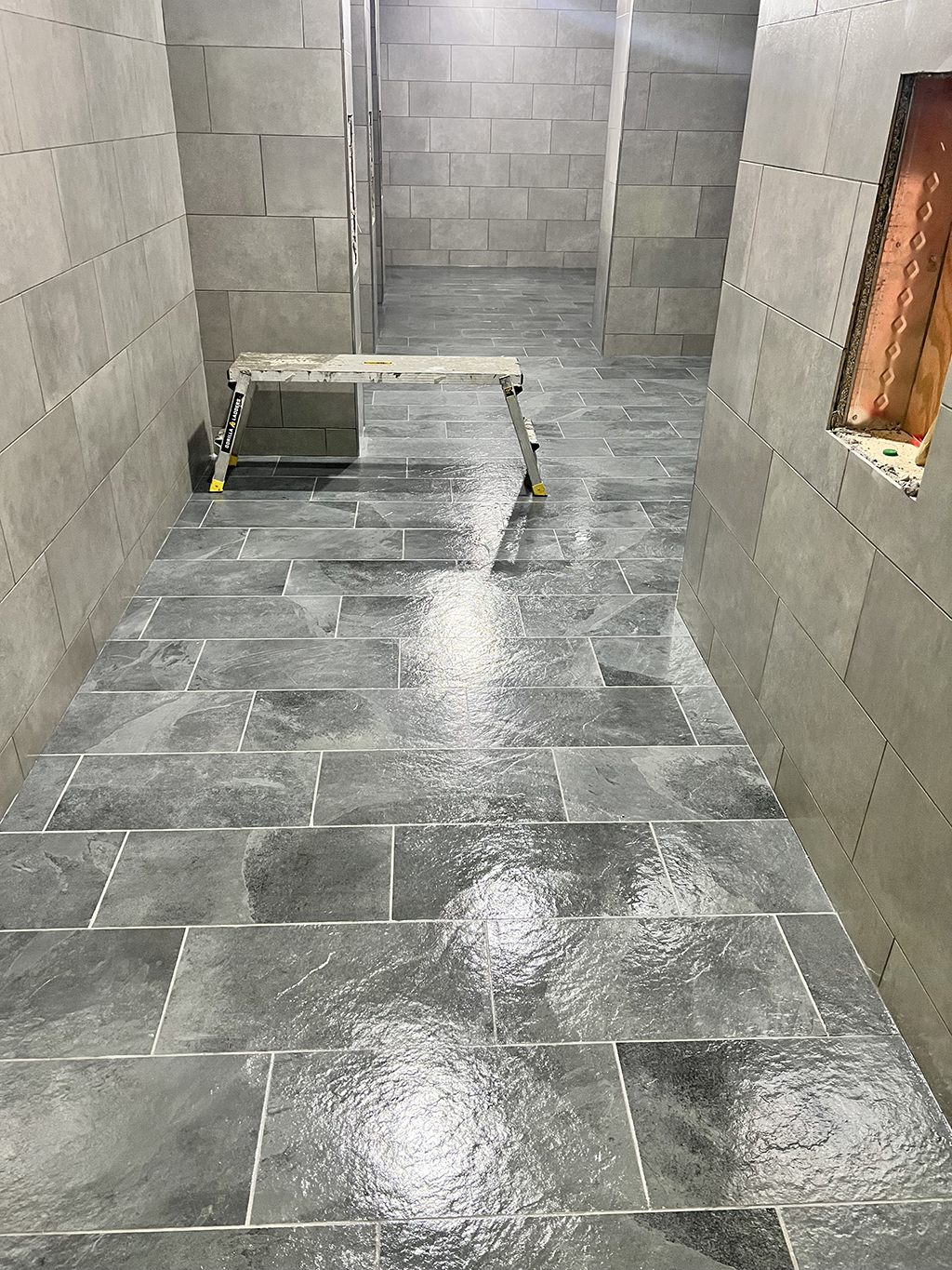 - Installed product: Ceramic Tile, Sealed Concrete, LVT, Black Beauty, Base; Wall Bumpers